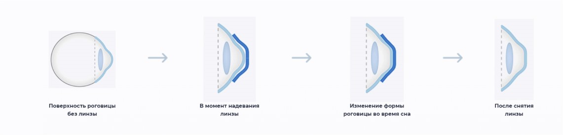 С помощью этих линз меняется форма роговицы, а, следовательно, и оптические свойства глаза.